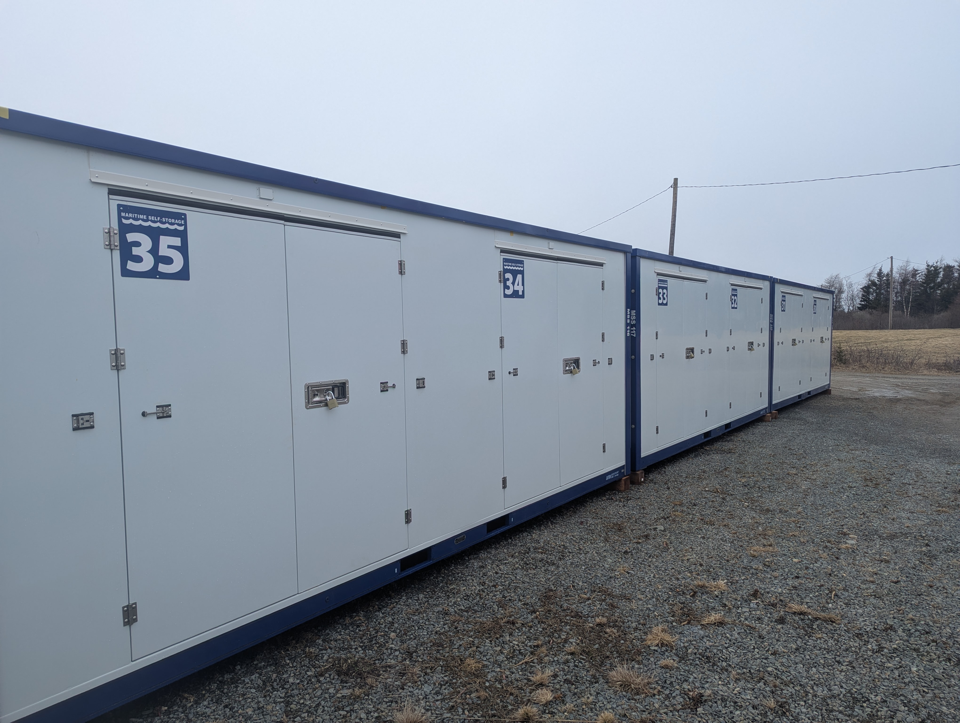 These larger units are the size of a garage. They're used when storing the equivalent of the furniture from a house or seasonal vehicles such as cars or boats. They come will full roll-up garage doors.